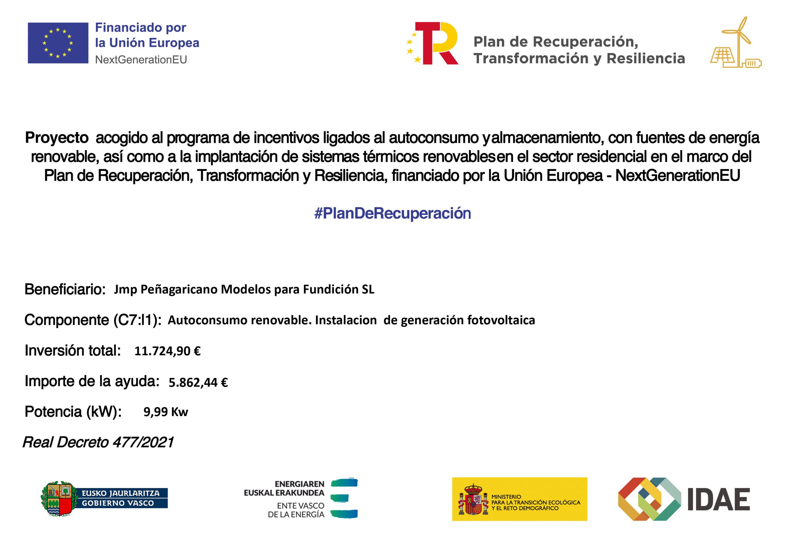 Proyecto acogido al programa de incentivos ligados al autoconsumo y almacenamiento, con fuentes de energía renovable. Plan de Recuperación, Transformación y Resiliencia, financiado por la Unión Europea – NextGeneration (EU).